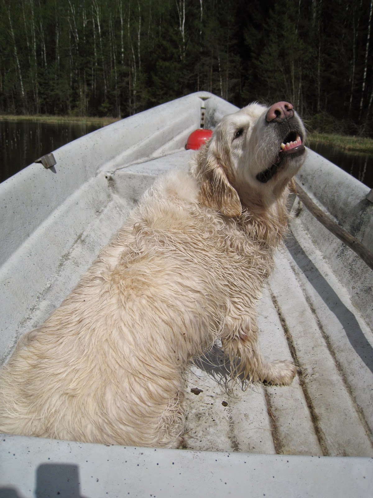 Aku ei ole koskaan ollut mikään auringon palvoja paksun turkkinsa takia. Herra tykkää uiskennella lämpimällä säällä kun vesikin on tarpeeksi lämmintä. Kylmään veteen Akua ei saa menemään millään. Aku myös tuppaa tulemaan veneeseen kun lähdetään kalaan. Kuitenkaan kauaa koira ei kyydissä viihtyisi, mutta rauhoittuu kuitenkin veneen keulaan kun ei muuallekaan pääse.